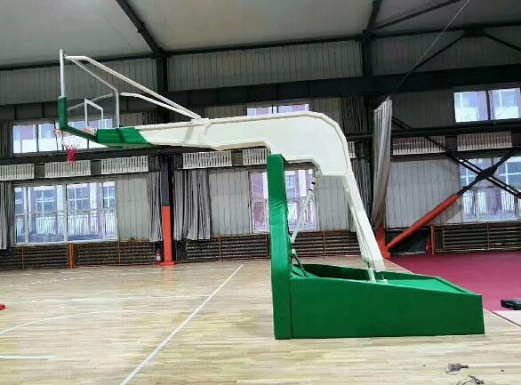 電動液壓籃球架一般用于什么場所,以下是廣東體育館訂做的電動液壓籃球架。